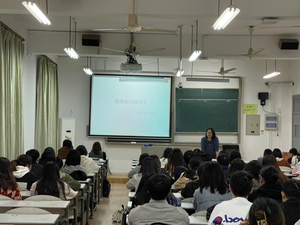 2021年11月4日下午16时,pp电子游戏平台官网财务管理专业在教一303召开本专业顶岗实习动员大会。财务管理专业教师和财务管理N18级学生全部到场参会。
