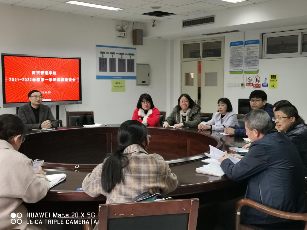 2021年11月25日下午,pp电子游戏平台官网在经管实验中心会议室召开了2021-2022-1学期教师座谈会。会议由孔冬副院长主持,各专业负责人及教师代表共14人参加此次会议。