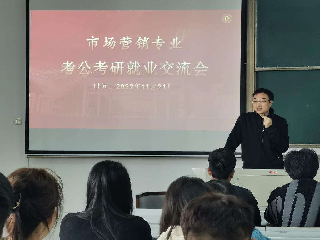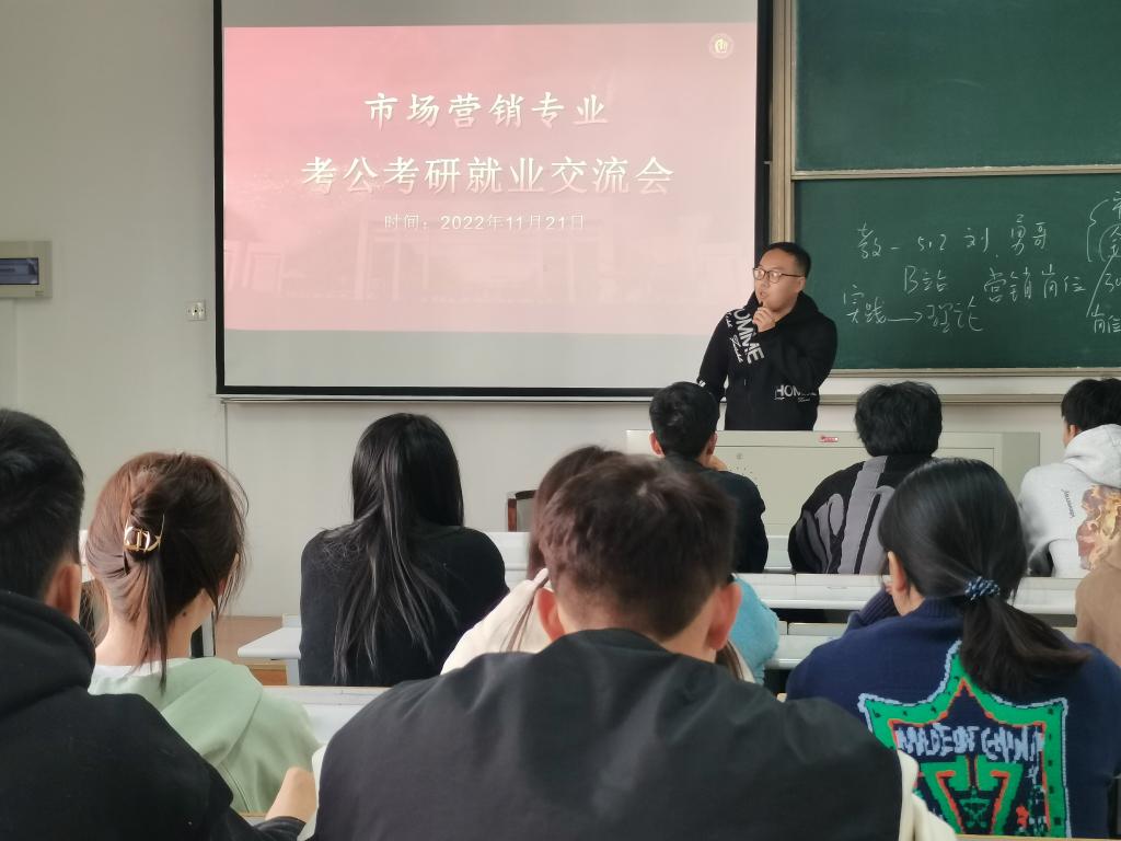 为引导pp电子游戏平台官网市场营销专业学子做好考公考研就业的规划,最大程度缓解学生因考研考公就业迷茫产生的心理压力,经前期走访调研,收集学生反馈的问题,市场营销专业于2022年11月21日下午在教二B406开展针对性的考公考研就业交流会。会议由俞杰龙老师主持,班主任潘嘉亮、李艳杰老师以及市场营销专业各年级学生代表参加了此次交流会。