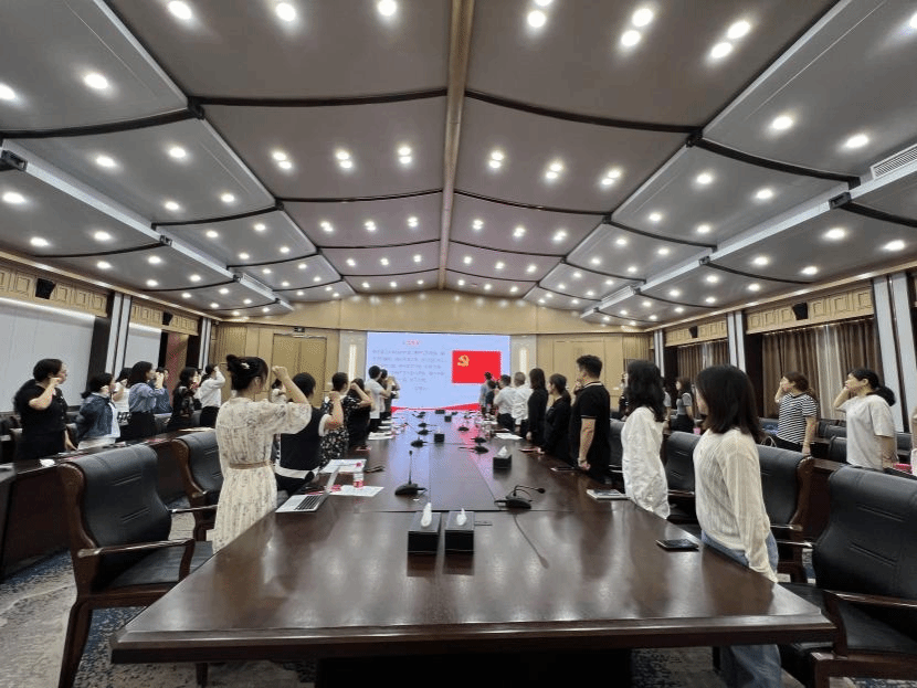 “我志愿加入中国共产党,拥护党的纲领,遵守党的章程,履行党员义务,执行党的决定……”,在党旗和入党誓词下,全体教职工党员郑重宣誓。党旗猎猎、誓词铮铮,提醒着每位党员教师在工作和生活中时刻以党员的标准严格要求自己,切实发挥先锋模范作用。