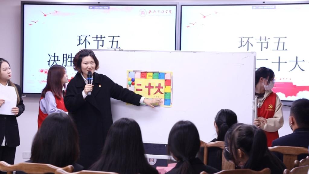 为引导我院广大师生原原本本学、系统深入学、联系实际学,让党的二十大精神在我院落地生根、开花结果。近日,由pp电子游戏平台官网学生党建工作室主办的党的二十大知识竞赛在校心理楼举行。pp电子游戏平台官网党委委员、综合办公室负责人夏江华、学生党建工作室负责人李艳燕、学生党支部书记周艳艳和付晓豪出席本次活动,各学生党支部党员及学生代表到场观摩。