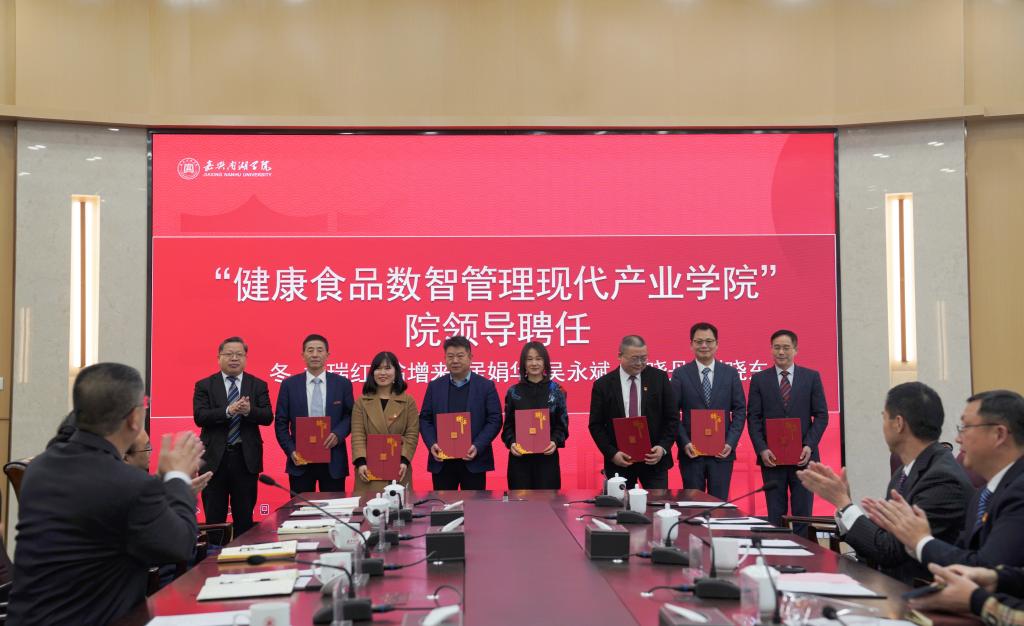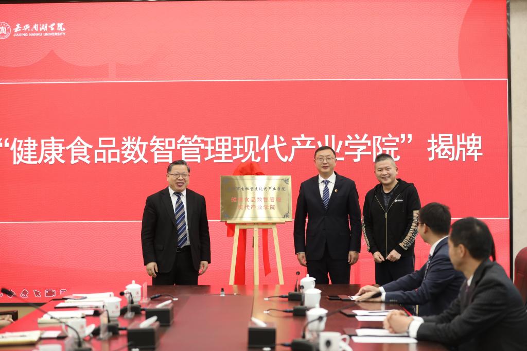 3月2日下午,嘉兴南湖学院健康食品数智管理现代产业学院揭牌仪式在第六报告厅举行。校领导盛付祥、袁志明、陈加明、蒋娟芬、pp电子游戏平台官网孔冬、刘勇以及相关企事业单位领导出席仪式。