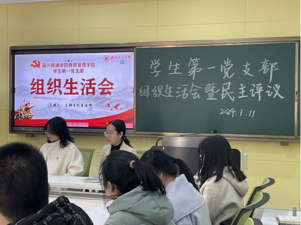 按照主题教育工作统一部署,2024年1月11日下午,pp电子游戏平台官网学生第一党支部在教一509召开2023年度主题教育专题组织生活会暨民主评议党员会议。会议由学生第一党支部书记李延卿主持,嘉兴南湖学院校党委书记倪沪平到会指导,学生第一党支部全体党员参加。