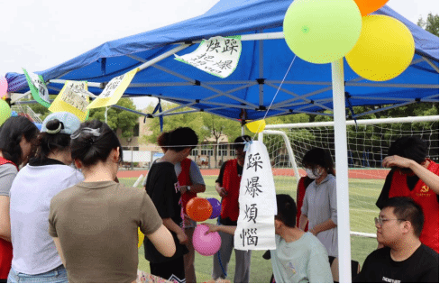 “解忧杂货铺”、“踩爆烦恼”、“一箭解千愁”、“心灵破茧”、“与美好不‘漆’而遇”、“植物认养”、“书籍义卖”等项目趣味横生、精彩纷呈、寓教于乐!同学们全身心投入到游戏中,在玩乐中放松心情、舒缓压力,在合作中相亲相爱、共识共赢,充分展现了同学们积极昂扬、朝气蓬勃的精神面貌。