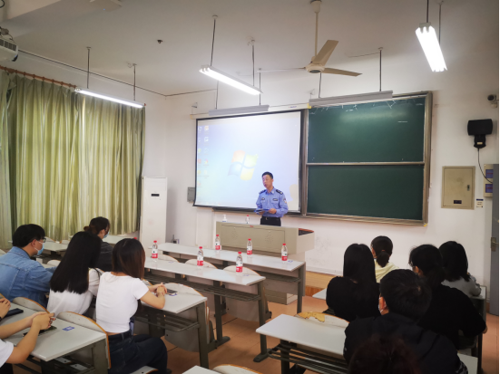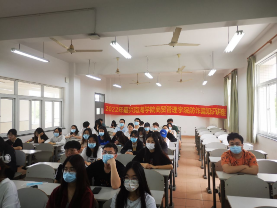 为进一步提高大学生反诈防骗的意识和能力,保障人身和财产安全,5月19日下午,pp电子游戏平台官网在教一403教室举办“筑牢反诈防线,共建平安校园”为主题的大学生反诈防骗安全知识讲座,讲座邀请了南湖区公安局新兴街道派出所冯警官到场主讲,由于疫情防控需要,本次讲座采用线上线下相结合的方式进行,300余名同学聆听了本次讲座。