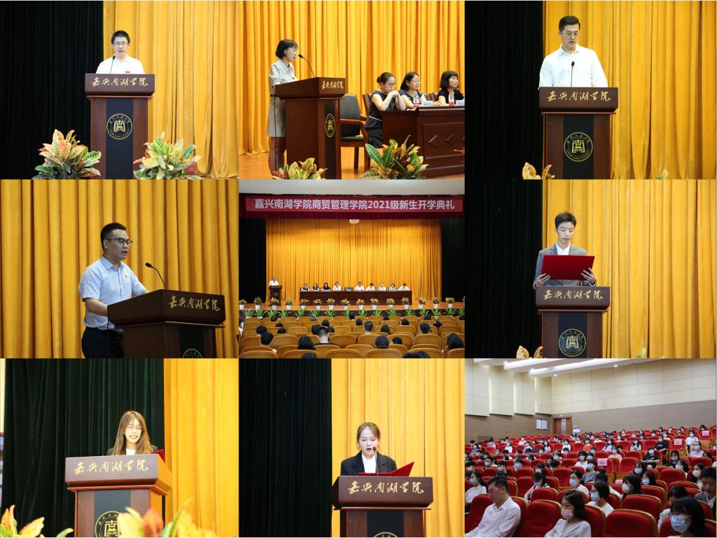 开学典礼在庄严的国歌声中拉开帷幕。夏江华、陈娴两位老师作为教师代表发言,夏老师勉励同学们进入大学后要改变学习习惯,树立生活目标,培养沟通交流的能力,祝愿同学们能够学有所成,为自己的大学人生涂上绚丽的色彩;陈老师通过三个“自”,即自信、自立、自强来告诫同学们考入大学,是人生新的起点,要有新的理想和追求。新生代表会计N124班的赵志鹏、营销N211班的周子钰分别发言,两位新同学代表纷纷表达了考入嘉兴南湖学院的喜悦之情,对未来多姿多彩的大学生活充满了憧憬,对未来的学习生涯规划充满了自信。老生代表、院学生会主席郭瑾颖代表学院全体在校生对新生的到来表示热烈欢迎,期盼与全体新生一起牢记学院领导、老师和父母的殷切期望,在未来的大学生活中,努力做好自己,成为一名德才兼备的优秀大学生;原财务N122班黄思聪、人力N062班李超凡两位校友代表分别发言,他们深情地回顾了在母校学习生活的美好时光,并结合自身工作成长历程,勉励同学们要珍惜大学时光,勤奋学习,全面提高自身综合素质,做好人生规划,努力追求人生理想。