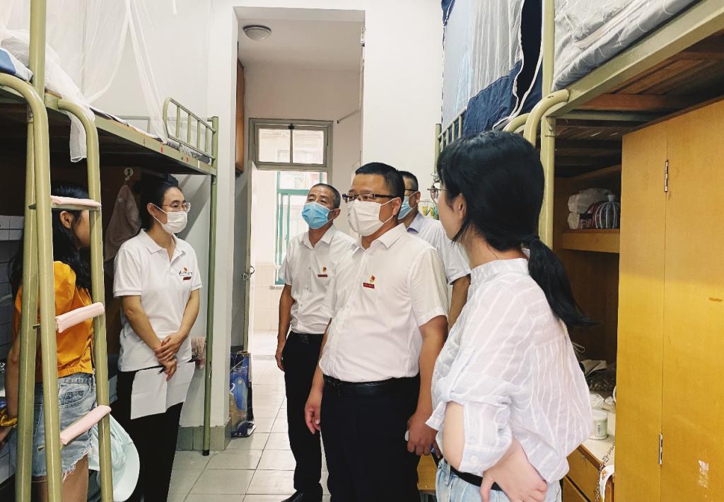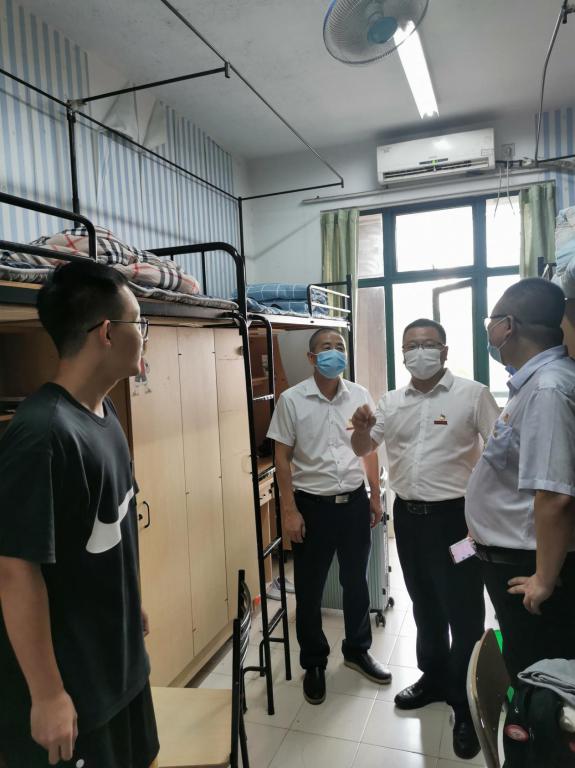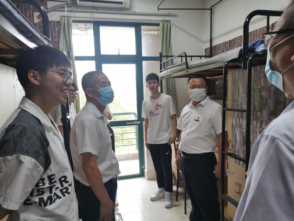 每走进一间宿舍,胡文蔚副书记都会仔细察看学生们的生活环境,并与同学们亲切交谈,详细询问新生进校后的感受以及住宿、生活等情况,让同学们感受到学校的温暖与关怀。