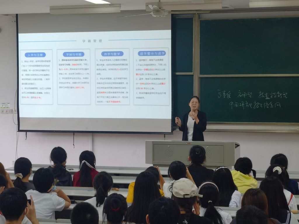 本次始业教育活动还邀请了学院学生工作负责人占华勇老师和学院教务管理工作负责人何晗老师给同学们讲解了校园安全、校规校纪、教学管理等相关要求。