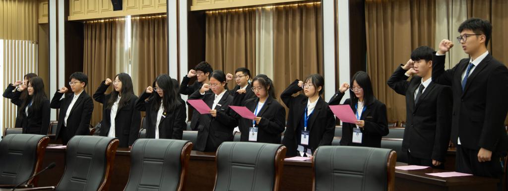 会上,大家观看了全国五大革命圣地高校商科学院团建联盟献礼二十大的原创合唱视频——《强国一代有我在》。随后,五所高校学生代表分别作主题报告,报告集中体现了以红船精神、井冈山精神、遵义精神、延安精神、西柏坡精神为代表的革命精神在新一代青年身上的延续以及红色力量的传承。会议的最后五大高校与会人员全体起立,由各校学生代表领读誓词,举起右拳庄严重温入团誓词。