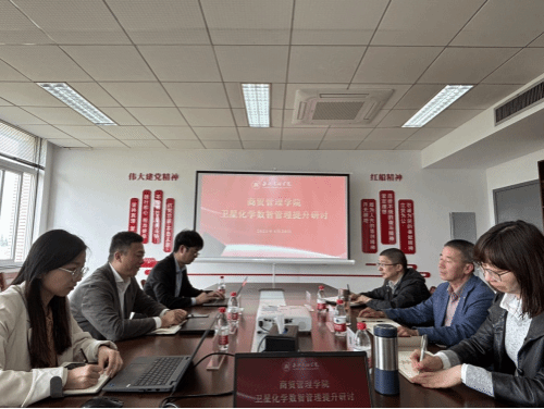 4月28日,卫星化学股份有限公司企管部朱卫刚、李鸿敬、卢晨一行来学院,就企业数智管理提升进行研讨。学院院长孔冬、副院长魏巍、夏江华出席研讨会。